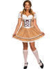 Gorgeous Gretl could be gorgeous YOU! This soft and absolutely stunning Gretl Oktoberfest Dirndl Womens Costume is made for women who want to add a little sexy this Oktoberfest. If you're looking for a more modern, but comfortable take this Oktoberfest then the Gretel Dirndl is for you! The underbust, drop waist dress is made from soft caramel coloured faux suede and has chocolate and cream lace decorating the hemline and bodice. The faux lacing of the bodice is held together by silver toggles decorated with rhinestones. Each of the dress straps have eyelets and a buckle so that you can make the dress as short or long as you like! To finish off the look is an anglaise lace off the shoulder crop top. The perfect blend of cute and sexy, just add some killer heels and do your hair up nice! What a look.