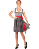 You might be an Oktoberfest pro, but with this Mila Oktoberfest Dirndl Womens Costume, you'll feel like it's your first time in the Beirgarten all over again! This absolutely stunning costume is in classic Dirndl style, with the hemline falling below the knee and the front zipping up with an invisizip at the bust. The dress is a black and white check and features a floral ribon sewn just above the hemline that goes right around the dress, as well as a matching ribbon that follows the curvature of the bodice line, up and over the shoulders. The front of the bodice is decorated with soft, floral embroidery that draws the eye up from the slim waist, to the bust and face. A white, short sleeved, cropped shirt is also included and features a high collar, hemmed in red to make the contrast really pop. To finish it all off is a beautiful black apron, covered in more soft embroidery to match the bodice, and finished off with a bright red ribbon. Simply add a petticoat for a fuller skirt, pull your hair into a brain crown and add a pair of heels and you're ready to party!
