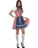 An Oktoberfest essential or great for any party that might involve the amber nectar. The Gretchen Beer Maid Womens Costume is a colourful dress with a peasant girl ruffled bust ribbon laced bodice and full skirt with a folksy trim and apron. White stockings with matching bows are included. Add volume with a petticoat.