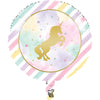 Add this Unicorn Sparkle Foil Balloon to your little girl's magical birthday decor. This foil balloon measures 46cm and features a gold unicorn surrounded by stars against a rainbow background. Combine with other products from our Unicorn Sparkle party supplies range for a coordinated look!