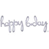 Every birthday bash needs one of our Happy Bday Silver Phrase Foil Balloon. The party supply features 2 silver foil balloons making up the words "happy" "b-day", styled in fancy cursive writing! For easy inflation the balloons come with a straw for you to breathe air into the balloons, as well as ribbon to tie the balloons up across a wall. Otherwise, check out our helium tanks to ensure the foil balloons float for the whole party, just add balloon weights and you're golden!