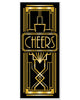 Decorate your 1920s or Hollywood theme party with this Great 20s Door Cover. This door cover is made from plastic, features a black and gold print with a "Cheers" headline in the center and is great for both indoor and outdoor use.