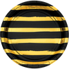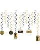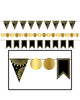 If you're after simple and classic party decorations for your black and gold or 1920s party theme then you can't go wrong with this Black and Gold Mini Foil Streamer Kit. This kit contains three different streamers decorated with three different shapes of cutouts. One streamer contains a line of 9 triangle shaped pennants, printed with a black and gold design. The second streamer features a line of 17 metallic gold round cutouts and finally the third are 9 black pennant shaped cutouts with gold trim. For a coordinated look pair this up with our range of Black and Gold or 1920s party supplies including party cups, party plates, tablecovers and more.