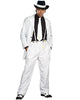This Gangster Zoot Suit Mens Costume is sleek and stylish and perfect for any man of the Mafia. The costume features a button front longer length pinstripe zoot suit and matching pants with side pocket and gold chain detail. The costume also includes white adjustable/removable elastic suspenders, a matching black and white fedora hat and white neck tie with '$' sign detail. Be the Kingpin at your next party and pair this costume with an inflatable or toy gun and a cigar.