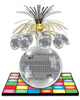 Add a groovy accessory to your table with this discolicious 70s Disco Ball Centrepiece. This blazin' accessory includes a foil cascade fountain with a disco ball cutout on top of a rainbow rocking dancefloor.