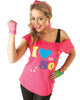 You'll just wanna have fun in this off the shoulder style I Love the 80s Pink Womens T-Shirt. The shirt features the words 'I love the eighties' written in colourful font and surrounded by small stars. Perfect for dressing up eighties style. Just add lace and neon accessories and you'll look the part.
