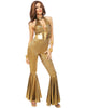 Bring some sparkle to the dance floor with this bling filled Disco Dazzler Womens Costume. With a large faux leather gold belt to cinch in your waist and a sparkle filled shirt and pants, you'll look like you just stepped out of Saturday Night Fever .