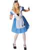 Recreate the beloved fairytale character in this Disney Classic Alice in Wonderland Womens Costume. Based on Disney's animated film version of the tale, the costume features a blue dress with an attached white apron with a character print, and a black bow on the bodice as a finishing touch. A black bow headband is also included to complete the look.