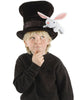 This unisex Tea Party March Hare Hat Gloves Tail and Bow Tie Kit is perfect for your next Alice in Wonderland or Easter party. The costume features a black top hat with attached ears and a black and white bow. White faux fur gloves with paw detailing in pink, black and white bow tie and fluffy tail.
