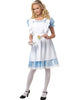 Be ready for your next Mad Hatters Tea party in this Alice Womens Costume. The signature blue dress with apron overlay has puff sleeves and a lace frill along the bottom. Dress easily slips over the head and attaches behind the neck with a small patch of velcro.
