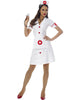 Look like a traditional nurse in this old-school Classic Nurse Womens Costume featuring a white dress with red buttons and piping on the sleeves. This comes with a separate apron with a red cross symbol and matching headpiece on a hairband. To complete the look just add a stethoscope and some sexy red heels.