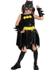 Turn your toddler into a crime-fighting superhero, just for one day! This adorable Batgirl Deluxe Girls Toddler Costume includes a black dress with a yellow bat logo and all the accessories you see here. Move over Batman, Gotham City has a new hero! This is an officially licensed Batgirl costume. TM © DC Comics.
