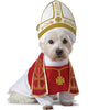 Our Pontiff Mens Costume includes a long white robe with a detachable collar and golden lamé capelet and white sash. The miter hat is white with gold embroidery and tops the look off perfectly. Great for a couples idea when paired with one of our nun costumes.