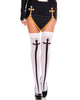 Great to go with your next rock and roll or naughty nun outfit these White Gothic Cross Opaque Thigh High Stockings are the perfect finishing touch!