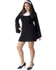 Everyone will be sweating in the pews when you wear this Sinfully Hot Nun Womens Costume. The costume comes complete with a black dress featuring a sweetheart neckline trimmed in white and gold, a large white cross trimmed in gold down the length of the dress with a high-low skirt design that is also trimmed in a matching white and gold. Also included in the costume is a pair of black arm warmers with trumpet sleeves trimmed in white and gold, a black habit with a white and gold band, as well as white thigh high stockings with a large black cross down the front. Are you ready for Confession?
