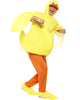Spread your wings and fly in this Duck Adults Costume. The costume consists of a jumpsuit with the wings and tail as well as an attached hooded headpiece with the beak and eyes. Orange pants are also included along with yellow shoe covers to complete the look.