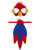 Want something simple and effective for your next themed party? This Deluxe Tropical Parrot Mask and Tail Set is perfect for you. The set comes with an eye mask that resembles the face of a parrot, with a red and white face and yellow beak. The mask also features colourful tufts of hair at the top and sides. Also included is a small blue and red layered tail with a little red tuft of hair at the top and ribbon fasten. So cute!