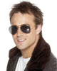 These Gold Aviator Glasses are a great finishing touch for your Top Gun or military costume, police or 70s costume. Sunglasses come in an aviator design with black tinted lenses and a gold frame. Nothing is more stylish than a pair of dark tinted aviator sunglasses to complement a large number of costumes.