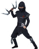 This awesome Ninja Deluxe Boys Costume is perfect for the stealthy little one at the party! The costume includes a black hooded top with red and gold faux wrist wraps at the wrists and red and gol trimming at the shoulders and down the chest. Also inlcuded with the costume are a pair of black pants with matching red and gold faux leg wraps, a red waist sash and black face mask that comes up over the chin and rests over the nose to keep your vision unimpaired for stealth mode. Just add a sword and shoes to complete the look.