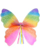 Transform into a beautiful butterfly in this pair of Girls Rainbow Butterfly Wings which are perfect for make-believe play at home, parties and fairy costumes. Made from lightweight fabric stretched over a wire frame and decorated with silver glitter and ribbons. Easy to wear, simply slip the straps over the shoulders and she's ready to soar!