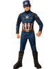 - Modem Endgame Costume: CostumeBox stocks the very popular Avengers Endgame style that brings back the classic red, white and blue colours but maintains a darker tone, to bring the costume into the modern day. Featuring an awesome captain America kids costume variant with a red and white muscle chest, with a dark blue colour scheme and a white star on the chest styled with a dark blue scaly armour style. Great as a book week or Halloween costume idea.