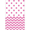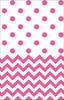 Add colour to your party table with our Bright Pink Chevron Tablecover. The table cover is styled with bright pink and frosty white chevron stripes and bright pink polka dots on a white background and a plain white tabletop! Perfect as a decoration idea for your party table and as a mess free tableware solution! Why not mix and match with our range of bright pink and frosty white chevron party supplies including party cups, party plates, tablecovers and many more to complete the look for girls birthdays, hens parties, weddings and engagement parties!