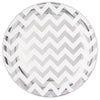 Premium Chevron Silver 19cm Round Plastic Plates Pack of 20
