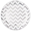 Premium Chevron Silver 26cm Round Plastic Plates Pack of 10