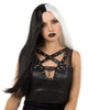 Look glamorous in our Deluxe Black and White Long Wig. Featuring a black and white wig with a part down the middle and glamorous long black strands flowing down one side and white strands flowing down the other. Great to finish your gothic costume, make a eye-catching fashion statement or even to go as the evil Cruella this Halloween! A bonus wig cap is included for added comfort and to keep your own hair under wraps.