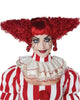 He may have a grinning smile and crazy red hair but this is not a clown you don't want to ask to tell a joke or he'll have you laughing to death. Give your friends and other partygoers the fright they will never forget when you enter the celebrations wearing this Nightmare Clown Mens Costume. This terrifying clown costume comes with a long sleeve distressed red and white striped shirt with a dirty appearance, a black panel down the middle and 2 red pom poms. A pair of matching distressed red and white striped pants with elastic at the waist and cuffs, a black ruffle collar and a white faced creepy clown mask sure to give you chills. Keep the kiddies at bay and perform cheeky tricks on bypassers.