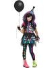 Perfect your creepy clown laugh when you wear this Wicked Klown Girls Costume and play a creepy off-key tune through a speaker to give all your neighbours a chilling experience this Halloween when you go trick-or-treating! The costume comes with a red and white horizontal striped shirt with two attached red pom pom button designs and puffed short sleeves, a matching striped skirt is also included and features and black and red bustle-like underlayer with a short front and longer back, as well as a detachable black and red ruffled collar. Also included with the costume is a pair of black ruffled wrist cuffs (gloves are sold separately), red pants, a headband featuring a black bow and a super creepy clown face mask that secures to the face with an elastic band around the back of the head. Play with me...or else!
