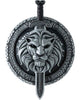 You'll be ready for battle with this Shield of Thrones Shield and Sword Set! This set includes a silver-look shield branded with the face of a lion and a matching sword. Perfect with any Game of Thrones or warrior costume!