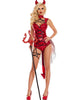 Show off your devilish side when you wear this evil Pentagram Devil Womens Costume. Bound to turn a few heads at your next dress up event, this sequin costume with bring out your devilish charm to all the party goers. Features a red sequin bodysuit with a black stretchy pentagram which wraps around your right thigh and another on the chest, black corset like lacing around the front of the bodysuit and an attached red sequin choker. On the back there is alternating black and red bustle with an attached sequin devil tail with a red bow. Costume also includes a pair of sequin devil horns. Walk around the party and begin plotting what your next evil scheme shall be.