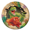 Feed your party animals before they start growling! Start of your tableware decorations with these Dinosaur 18cm Party Plates. These plates feature a roaring T-Rex and Triceratops bursting through a rock. These paper plates will match with our other Dinosaur party supplies for the complete look.