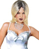 Brides come as all types so get your nasty on with this Evil Bride Wig. A short dirty blonde shaggy style, this wig has a centre part with dark roots showing in the middle. Perfect for your Chucky movie appreciation party! Wear a wig cap for added comfort and to keep your own hair under wraps.