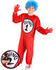 Become the Cat In The Hats partner in crime, and create a mess so big and so tall. Of course, we are referring to thing 1 and thing 2 from The Cat in the Hat’s box. The Thing 1 and Thing 2 cheeky characters are from the novel and movie Cat in the hat. They are almost identical except for the crest on their shirt distinguishing them between thing 1 and thing 2. CostumeBox stocks cat in the hat costume thing 1 and thing 2, featuring red jumpsuit suits with a thing 1 or thing 2 and of course a fuzzy blue wig. CostumeBox’s accessory range features wonderful Thing 1 and Thing 2 wigs Dr Seuss thing 1 and Thing 2 t-shirts, and a Thing 1 and 2 scarf, are great costume finishers. Go on have a little fun and check out our CostumeBox Thing 1 and 2 styles.