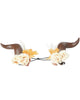 Complete your fairy costume with these mythical Woodland Fairy Horns. These brown horns feature white carnations and orange leaves at the bottom. Horns are attached to an elastic headband for pulling over the head and for comfortable wear.