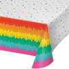 Complete your next Mexican Fiesta tableware with this Fiesta Fun Plastic Tablecover. The tablecover has a white top and sides with small scattered triangles all over. One of the sides of the tablecover also features a colourful piñata style printed layering. Combine with our range of Mexican Fiesta party supplies including party cups, party plates, tablecovers and more.