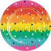 Complete your next Mexican Fiesta tableware with these Fiesta Fun 18cm Paper Lunch Plates Pack of 8. The plates feature a fun image of a piñata style layered rainbow pattern with black and white small triangles over the top. Combine with our range of Mexican Fiesta party supplies including party cups, party plates, tablecovers and more.