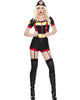 You'll be starting fires in the hearts of men so get ready to douse them when you wear this sizzling, sexy Fire Captain Womens Costume. The costume comes as a black short sleeved romper with yellow panels around the bust and waist that are bordered with reflective trimming, feature metallic red trimming at the arms and legs with a matching red front zip. Also part of the romper are attached suspenders red shoulder suspenders, as well as stocking suspenders that you can easy clip your own thigh high stockings to. Also included in the costume set is a black plastic firefighter hat with a firefighter's emblem on the front.