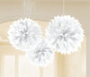 Hang these paper White Fluffy Decorations from the ceiling for an elegant and sophisticated look. The pack contains three decorations each measuring 40cm in diameter. Check out our great range of colourful party accessories and paper tableware to ensure your party is one to be remembered. We sell everything from plastic tablecloths, cups, plates, party favours, loot bags and so much more. These decorations are available in an array of fabulous colours and designs.