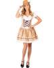 Gorgeous Gretl could be gorgeous YOU! This soft and absolutely stunning Gretl Oktoberfest Dirndl Womens Costume is made for women who want to add a little sexy this Oktoberfest. If you're looking for a more modern, but comfortable take this Oktoberfest then the Gretel Dirndl is for you! The underbust, drop waist dress is made from soft caramel coloured faux suede and has chocolate and cream lace decorating the hemline and bodice. The faux lacing of the bodice is held together by silver toggles decorated with rhinestones. Each of the dress straps have eyelets and a buckle so that you can make the dress as short or long as you like! To finish off the look is an anglaise lace off the shoulder crop top. The perfect blend of cute and sexy, just add some killer heels and do your hair up nice! What a look.