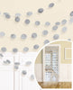 Add some glam to your party decorations when you hang this Silver Round String Glitter Decoration Pack of 6. These decorations will work with just about any party theme and can be either hung in a doorway, entryway or drape across a wall. Decorations come in a pack of 6 and feature round silver double-sided plastic cutouts strung along white string. Half the cutouts are a metallic silver and the other half are silver glitter. Combine with our range of Silver party supplies including party cups, party plates, tablecovers and more.