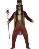 Curse or protect your patients from witchcraft in our Deluxe Voodoo Witch Doctor Mens Costume. It's a creepy costume adapted from the Voodoo tradition in the Caribbean! Fantastic for "healing" your mates from terrifying ailments this Halloween. Featuring a high quality purple tailcoat worn with a brown waistcoat and cream coloured necktie also with matching red and burgundy striped pants. To finish it off is a bead necklace, bone necklace and a matching purple hat. You'll be practicing voodoo magic in no time!
