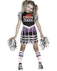 You'll be cheering for all the wrong reasons in this Spiritless Cheerleader Girls Costume.The costume features a classic cheerleader stlye black and red top with ragged edges and the words 'U ROT' printed on it. There is also a matching red and black skirt with zig zag hemline and detachable mesh tatters. Also included is a small mesh scarf that is ripped and tattered and a single black pom pom. Great for Halloween, no smiling though!