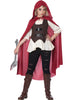 This Red Riding Hood Deluxe Girls Costume is a dark twist on the classic fairytale look. This costume comes with a black lace trimmed hooded cloak and an intricately patterned red and black dress with a lace up front panel. Perfect for Halloween!