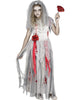 You will look drop-dead gorgeous in this Zombie Prom Queen Girls Costume. This costume comes with a pink blood-splattered dress and a white blood-splattered sash with 'Zombie Prom Queen' printed in black. A pair of glovelets, a tiara styled with blood splatter, and a red flower corsage is also included to complete the horrifying look.