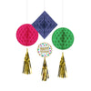 Happy Dots Happy Birthday Hanging Honeycomb Decorations & Tassels Pack of 3