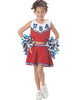 Get into the spirit of Glee and High School Musical with this great Patriotic Cheerleader costume for girls. The red and white top is screen printed with U.S.A and has red, silver and blue ribbon detail on the chest. The skirt is red with a matching red, silver and blue waistband and hemline. Two pom poms are included so you are all set to hit the field.