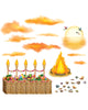 Set the perfect scene to your next luau or beach party with this amazing Luau Sunset Prop Set. The decorations come printed on a plastic sheet and need to be cut out separately. The prop set includes a fire, torches, shells, birds and food and drink Luau style!